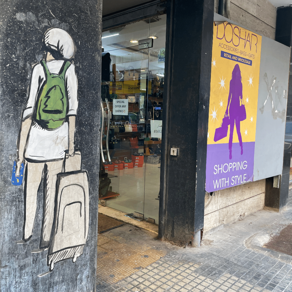 Perched atop a barstool outside a one-table “manoucheh” (the standard Lebanese breakfast food – pizza-shaped dough with thyme and oil topping) bakery, I was enjoying breakfast late one morning on Armenia Street in Beirut. A young couple with their toddler in a stroller walked up. The husband entered the shop and placed their order in Arabic, and then, standing right next to me, they began discussing something. The wife was busy mixing formula for the baby, freely making use of “my” table to do so (an American interpersonal distance measurement). Meanwhile, my Lebanese and Armenian nosiness piqued, and I started paying unconcealed attention to the scene unfolding at my front-row seat. He, Lebanese, she, Filipina, were glancing back and forth from one cell phone to another and discussing their next move in somewhat heated English. He: “I don’t know, it’s been four years since I’ve been here! A lot has changed, you know.” She: “I don’t mind walking, but you have to figure out where we’re going! It’s your country!”